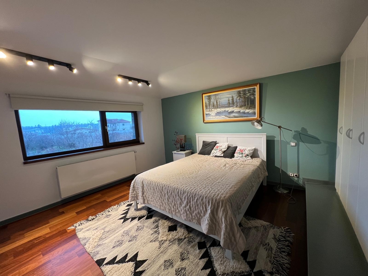 Casa are 5 camere este complet mobilata si utilat: 1 sufragerie, 1 bucatarie, 3 dormitoare, 2 dressinguri, 1 birou (pat extensibil), 3 bai (cu geam), 1 debara, 1 camera tehnica, terasa spatioasa inchisa (flexibilitate deschidere geamuri), solar, vegetatie matura in curte, aspersoare curte (put) si solar.