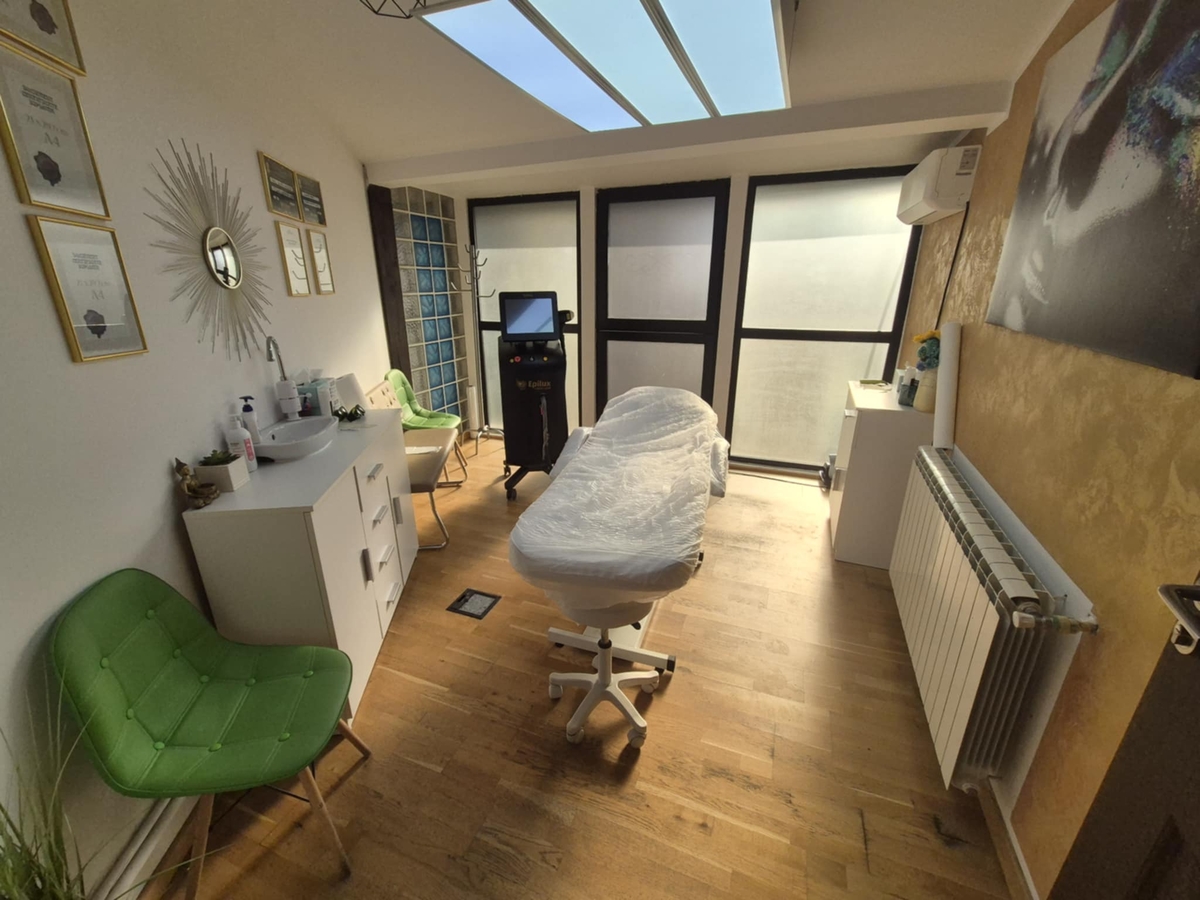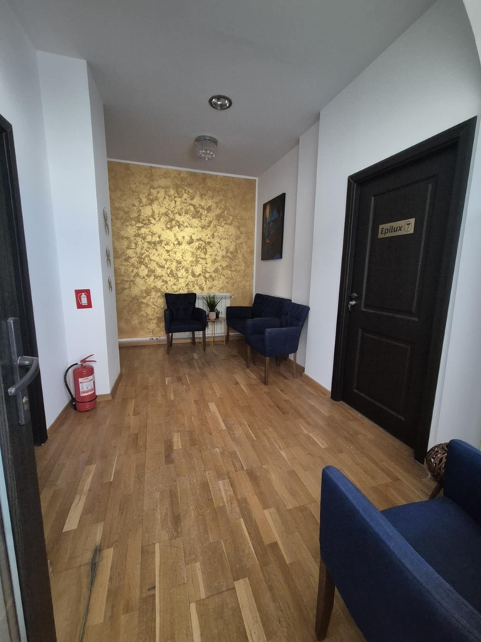 Momentan vila este compartimentata in 7 camere si toate dispun de aere conditionate si circuit de apa foarte folositoare in cazul unei clinici stomatologice. In componenta vilei se mai gasesc o bucatarie si 2 bai.