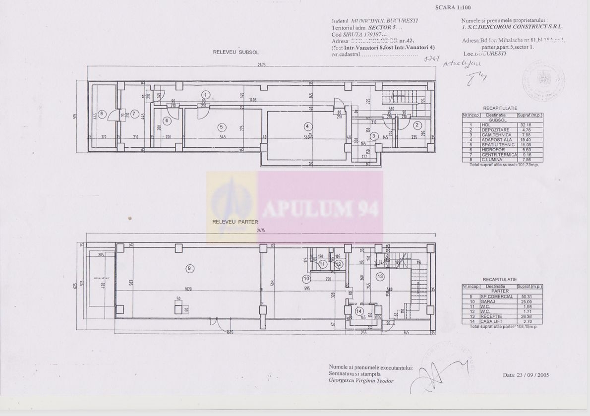 - Parter: 108 mp (spatiu anterior comercial + birouri, vitrina generoasa, acces direct din strada)