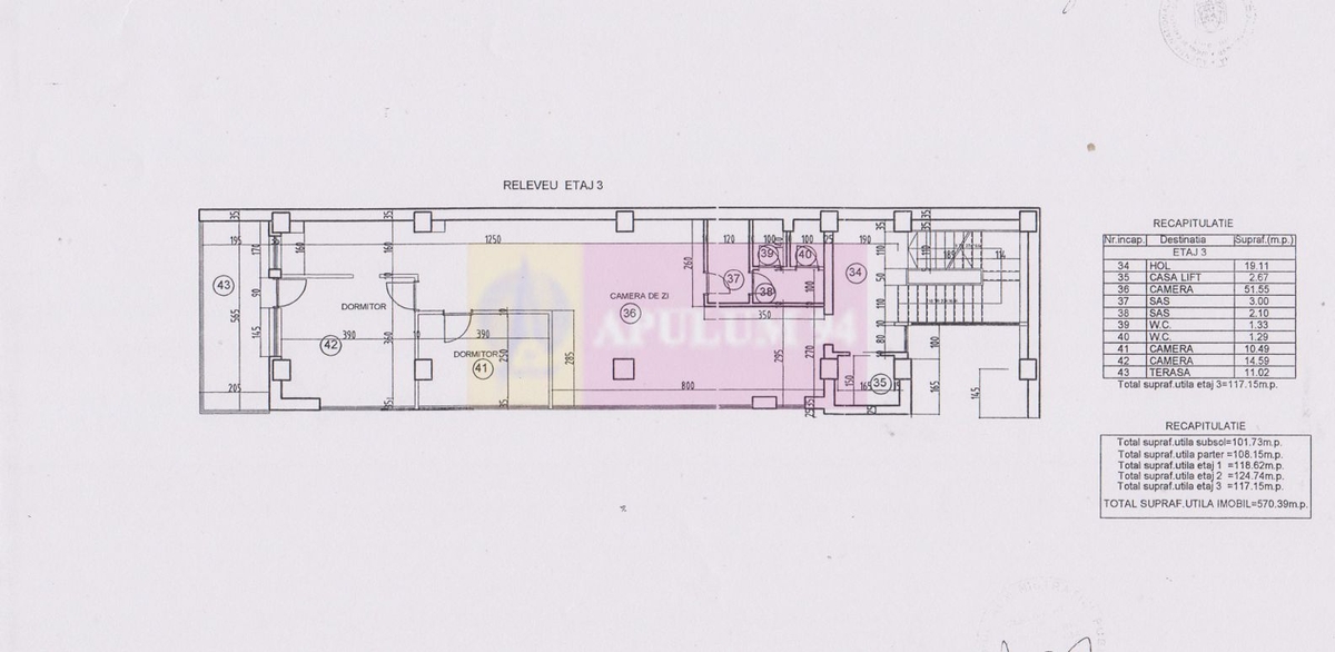 - Etaj 3: 117 mp (include terasa proprie ~11 mp)