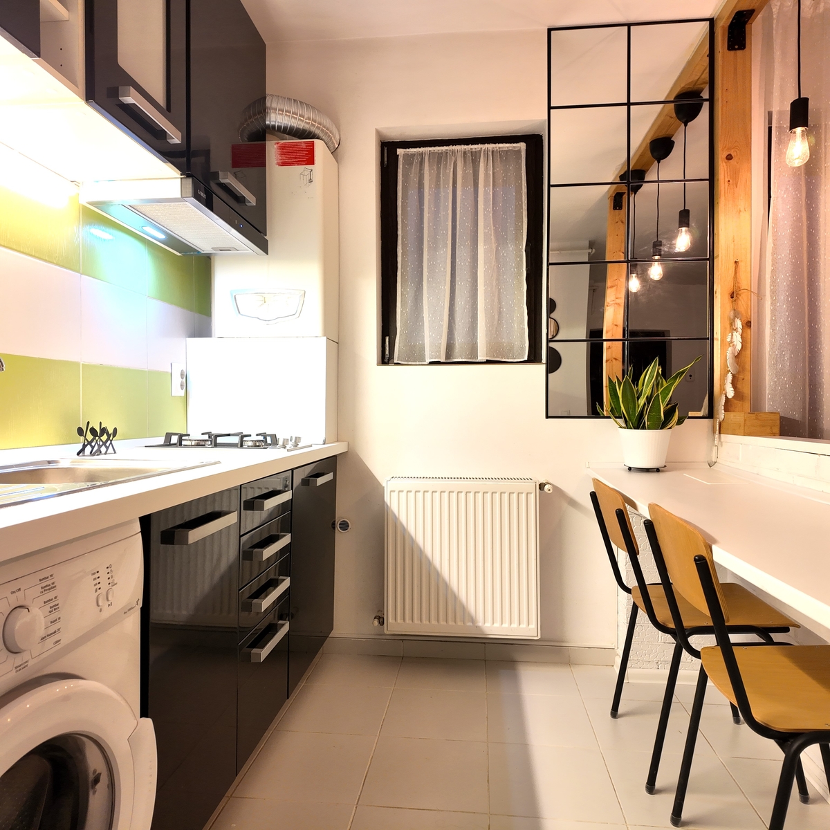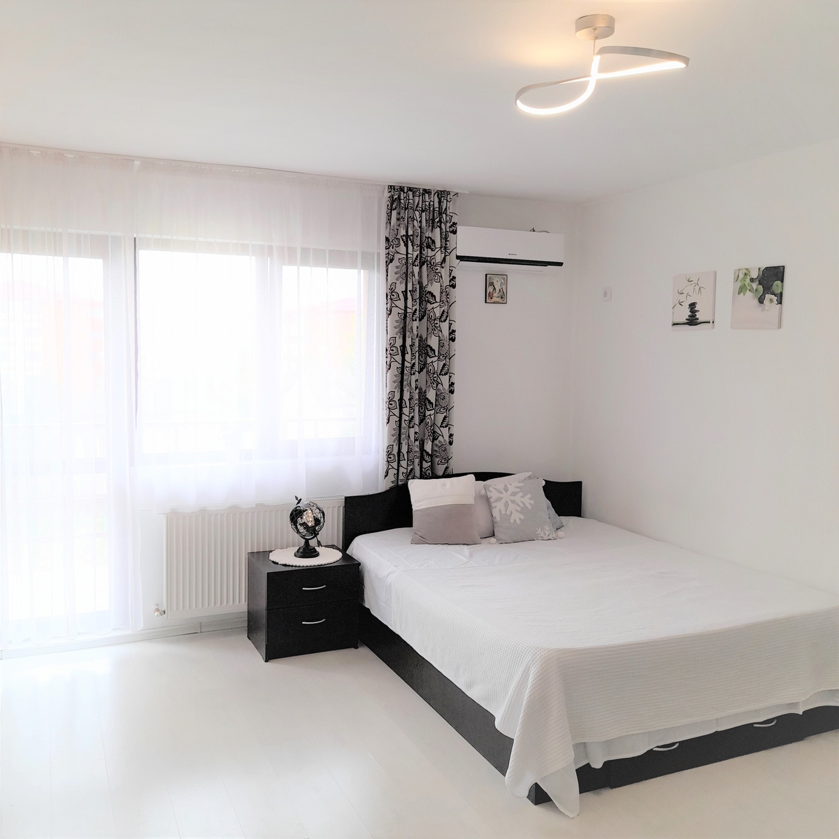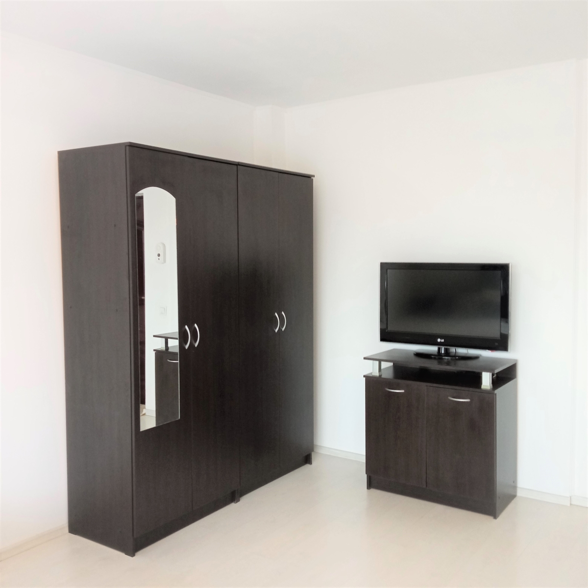 Garsoniera este recent igienizata si amenajata intr-un stil modern. Dispune de pat pentru doua persoane (160x200), sifonier dublu, pantofar si multiple spatii de depozitare.