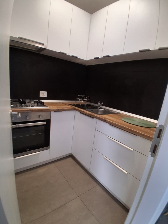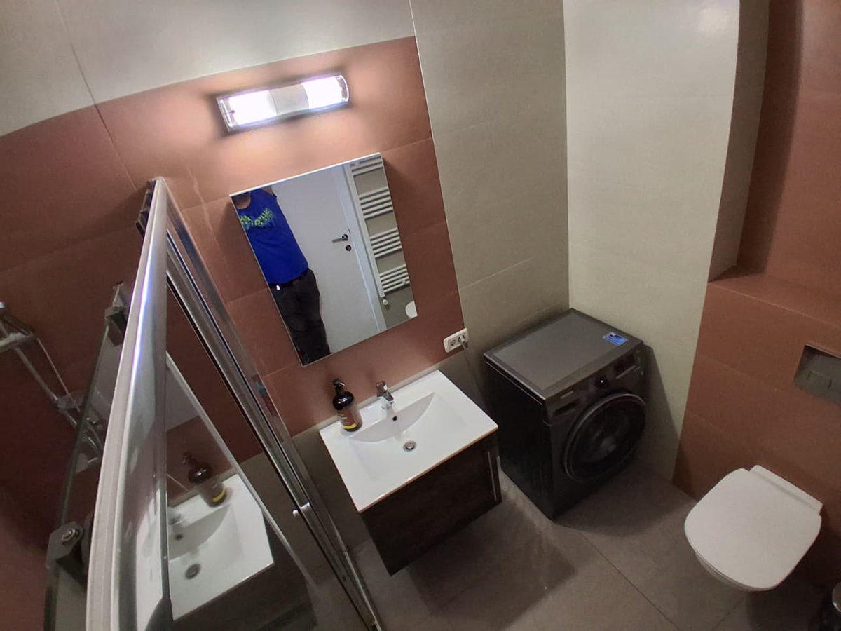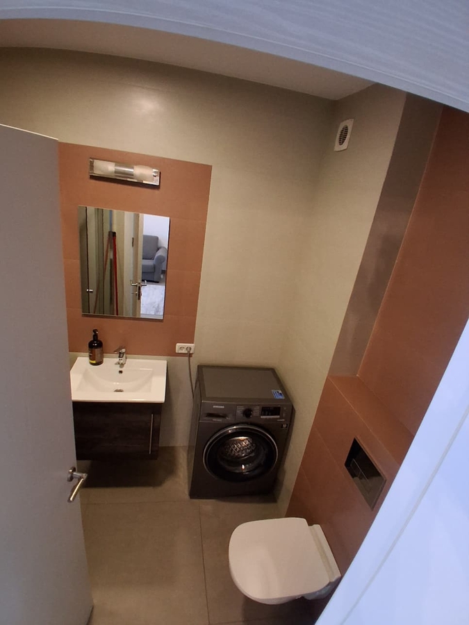 centrala proprie, incalzire in pardoseala, aer conditionat, masina de spalat cu uscator, TV, plita pe gaz, cuptor electric, combina frigorific. Totul nou. Garsoniera este la prima inchiriere.