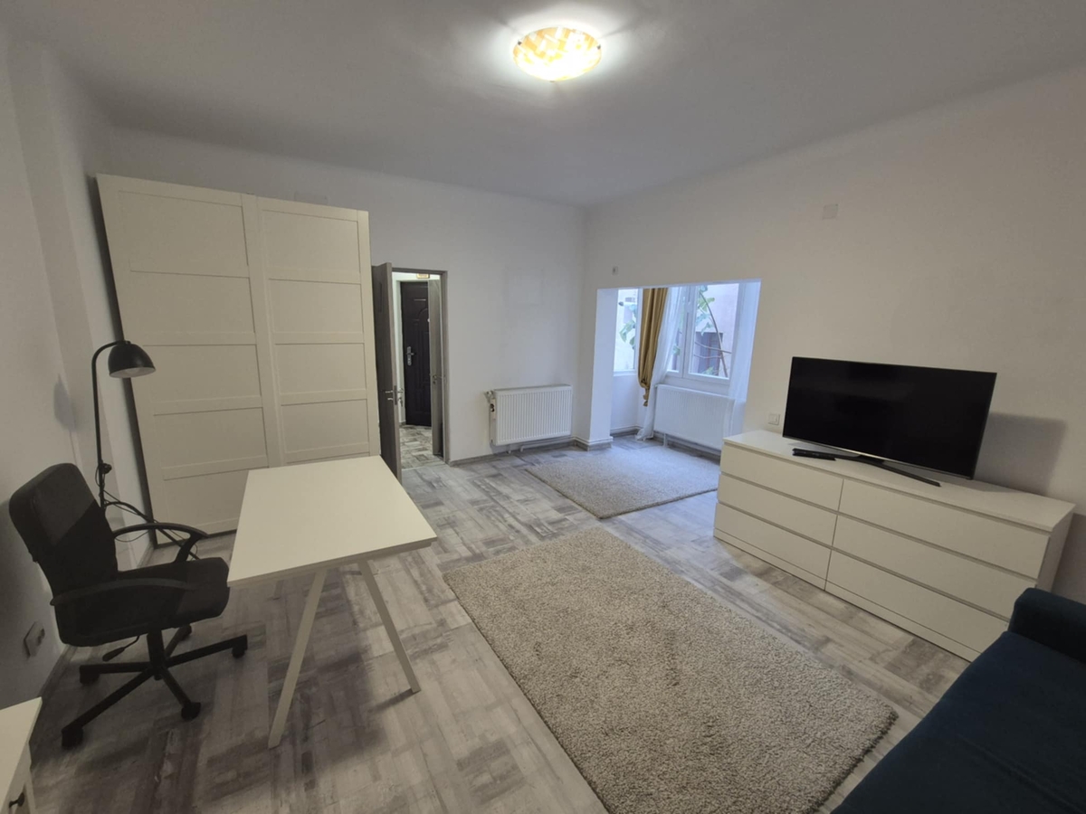 Visinilor, inchiriere garsoniera proaspat renovata la prima inchiriere, etaj 2/3, mobilata si utilata complet nou, um, ac, centrala termica, disponibila imediat pentru termen lung, suplimentar exista boxa depozitare la subsol si mic spatiu verde in curte, acces rapid mijloace de transport in comun, avans 1+1, Comision Agentie 50%, pret 400 Euro.