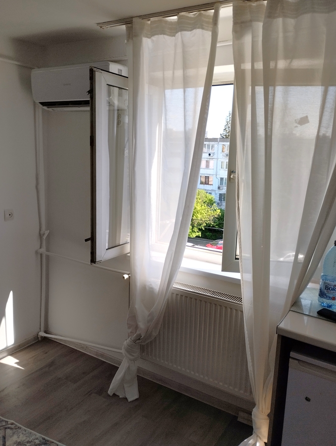 15 mp, et. 4/4, mobilata, utilata, parchet si pat noi, curata, plita electrica, o persoana sau cuplu fara animale, agentie