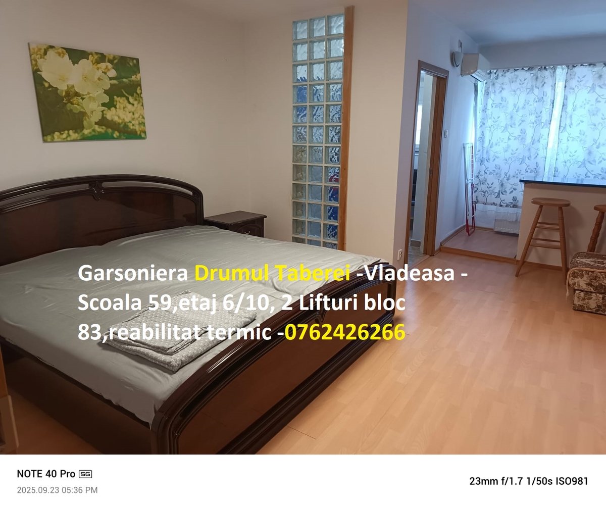 Se inchiriaza garsoniera situata pe Str. Vladeasa, intre Scoala 59 si Scoala 311, la etajul 6 din 10 al unui bloc reabilitat termic (Bloc 1983). Locuinta beneficiaza de o zona verde foarte frumoasa, fiind intr-o locatie excelenta, aproape de linia 41 si statia de metrou Tudor Vladimirescu.