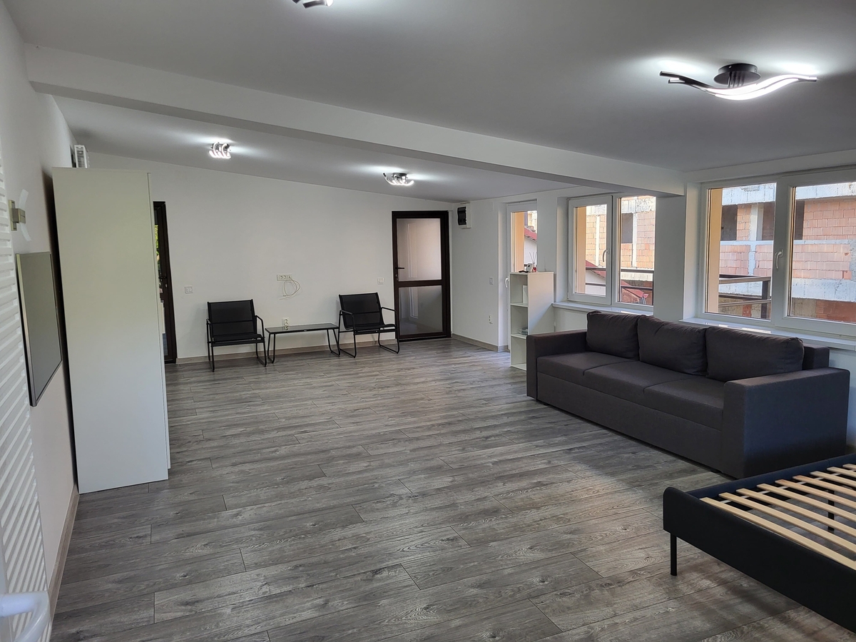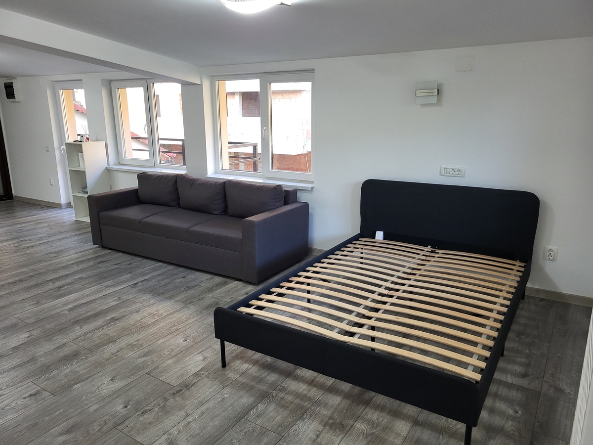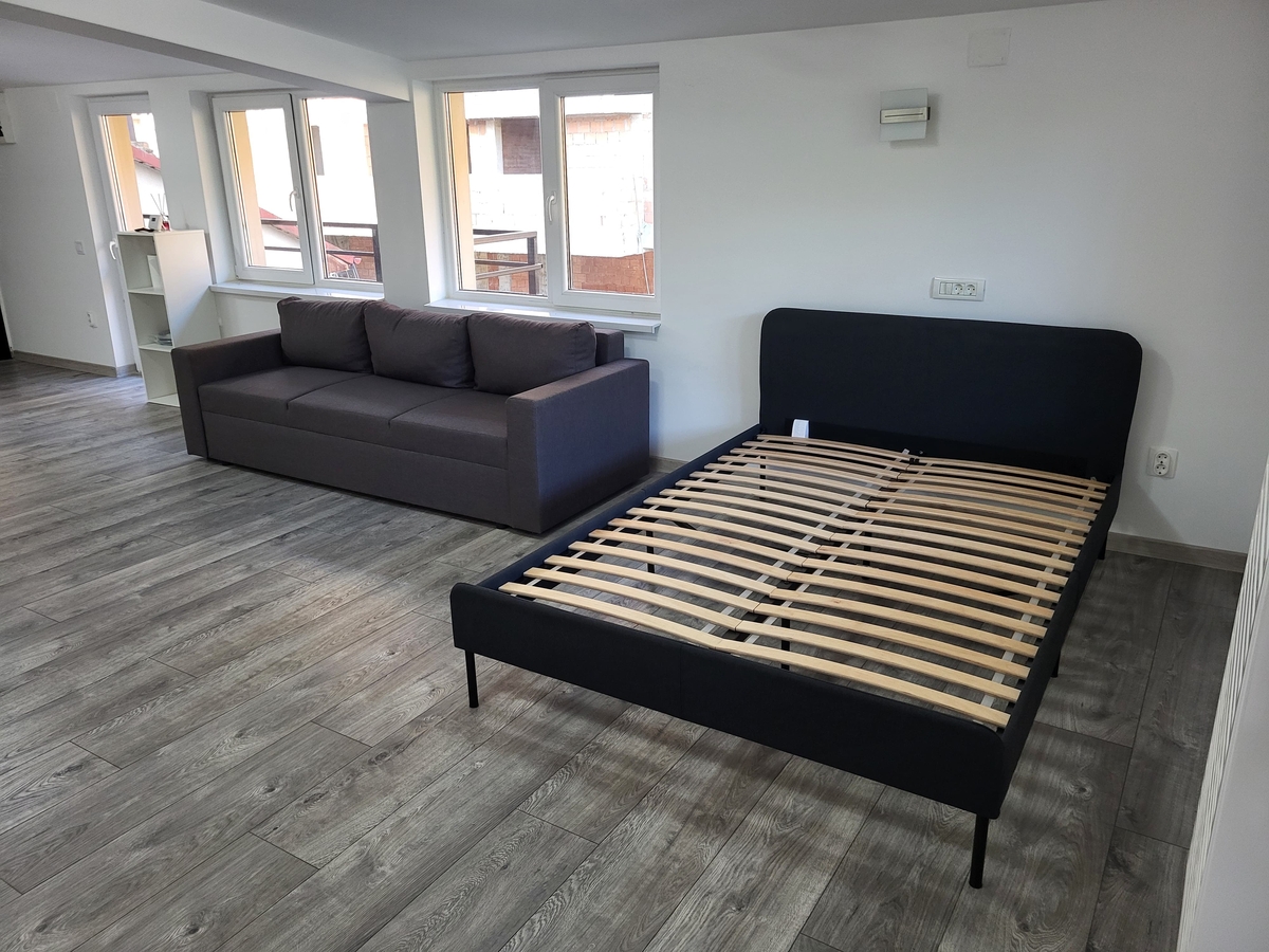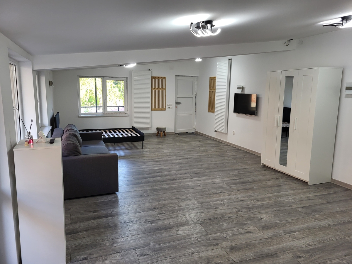 Apartament 1 camera Bucuresti, Sectorul 6, Giulesti 300 de metri pana la Lacul Morii. Se afla la etajul unei case nou construite. Apartamentul este complet utilat, contorizat, incalzire cu centrala termica Ariston de generatie nou Wi-Fi foarte economica si foarte bine izolat. Este compus dintr-o camera de 39 mp, baie 7 mp, bucatarie 12 mp, balcon 4 mp, terasa 10 mp si un loc de parcare in curtea proprie. Statia de autobuz si tramvai este la 450 de metri acces facil in Regie, Crangasi. O luna avans si una garantie proprietar direct.