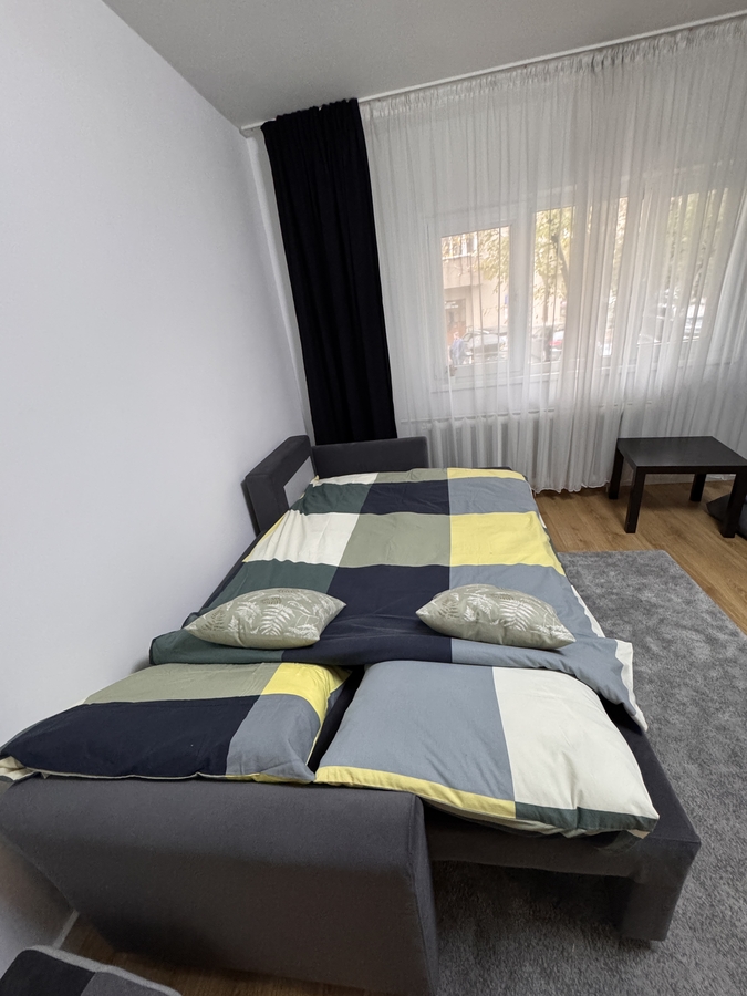 Direct de la proprietar - inchiriez pe termen lung garsoniera decomandata proaspat renovata, complet mobilata si utilata cu mobila si electrocasnice noi.