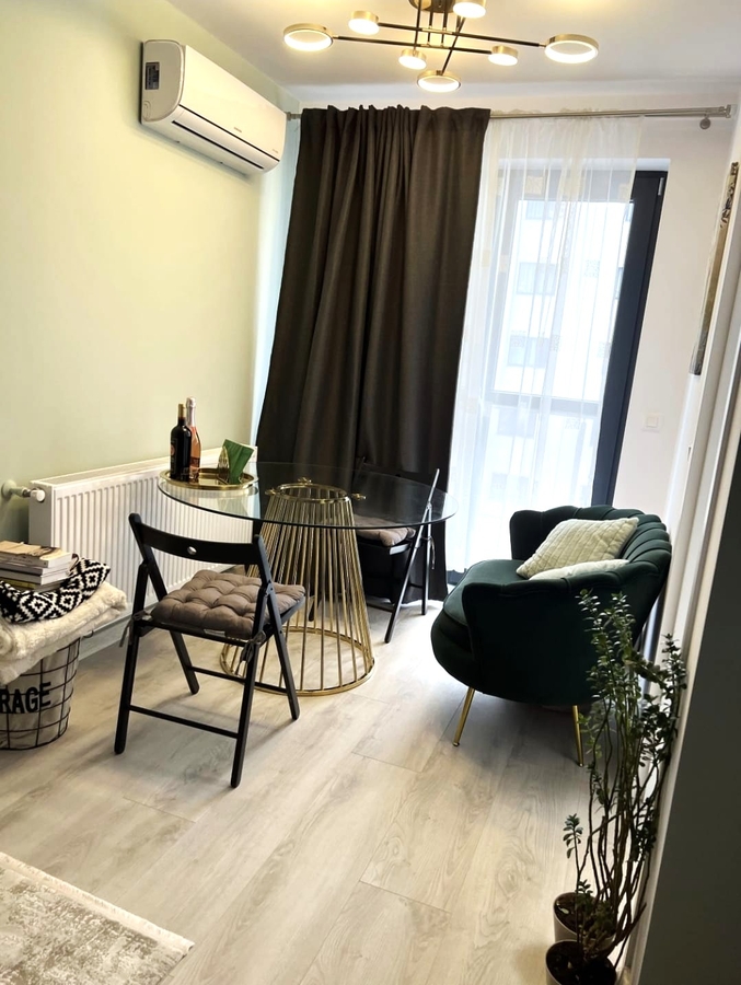 Agentie 50% Comision Garsoniera moderna in Hill Complex (IKEA), etaj 9/11, mobilata lux cu pat, scaune, masa, balcon 9mp. Avans 1+1,