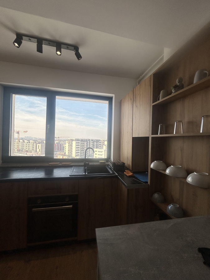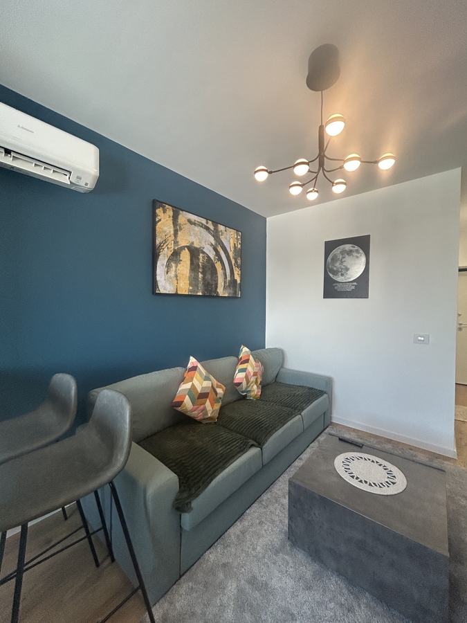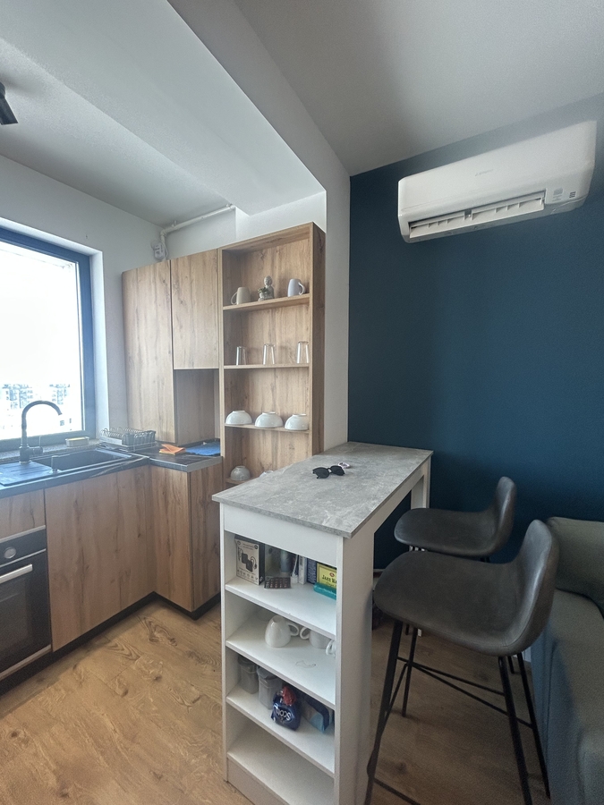 Studio-ul este recent renovat, cu finisaje moderne si mobilier de calitate, fiind amenajat cu atentie pentru confort si functionalitate. Dispune de spatiu bine compartimentat, zona de living/ dormit luminoasa, bucatarie complet utilata si baie moderna.