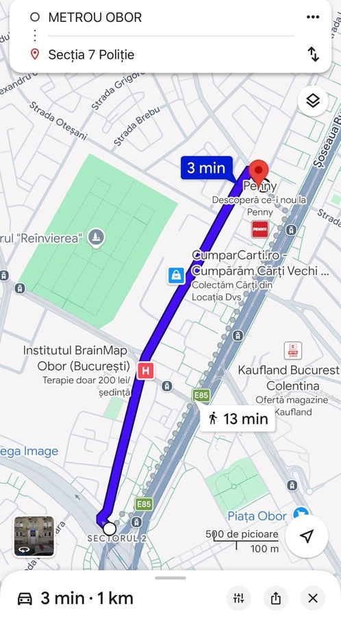 La 3 minute de mers pe jos de metrou Obor.
