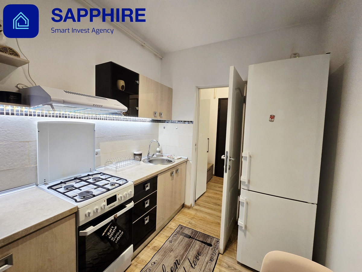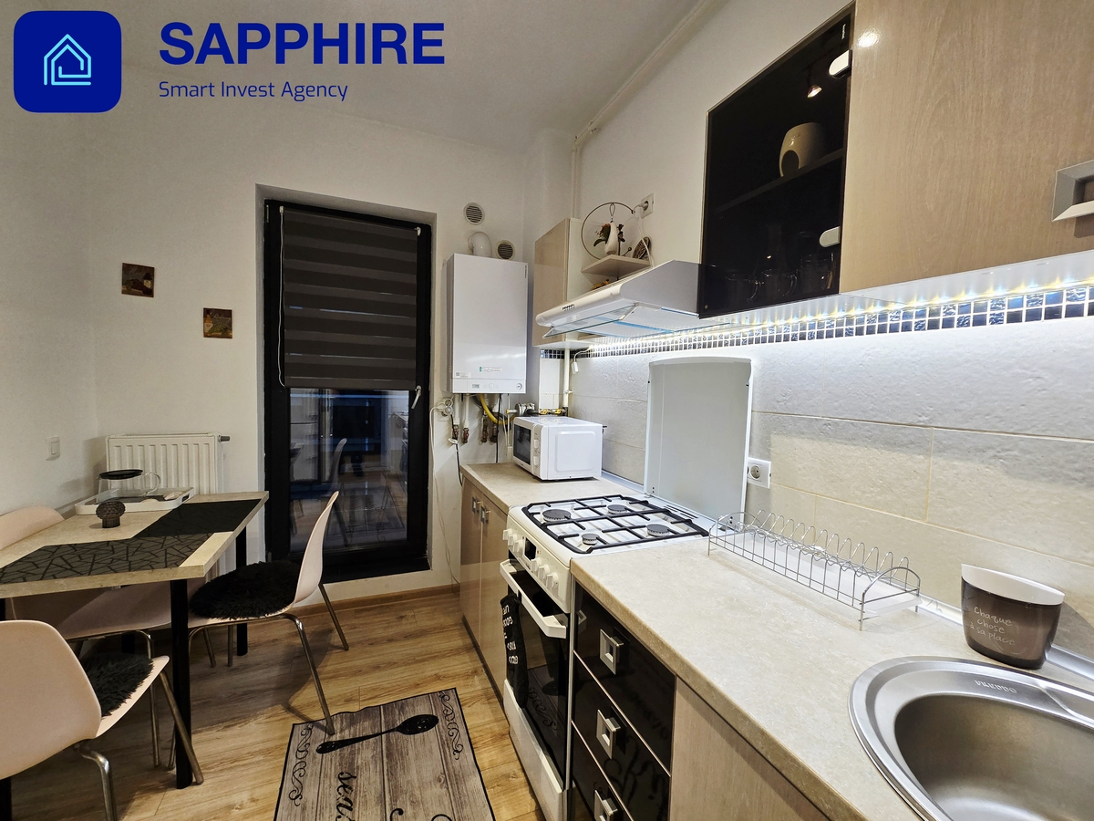 Mobilata si utilata complet: centrala termica proprie, aer conditionat, masina de spalat, frigider, aragaz, hota, televizor, fier de calcat, aspirator, etc.