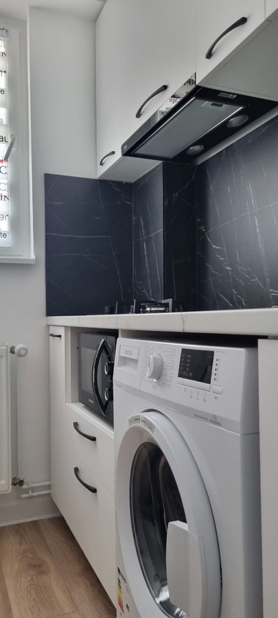Garsoniera confort 1 semidecomandat , mobilat nou , etaj 3/10 , frigider , aragaz ,masina de spalat ,tv ,gresie , faianta , parchet , termopan , bloc reabilitat .
