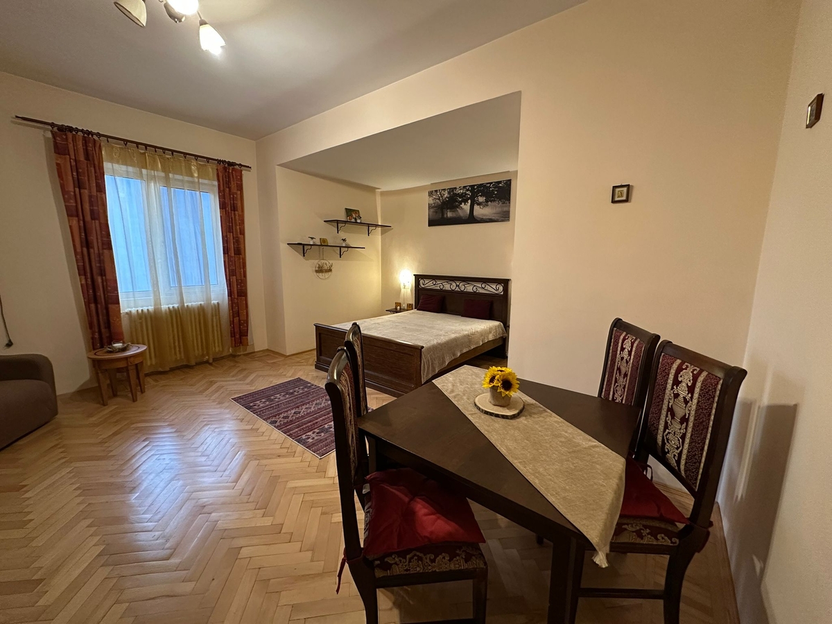 Inchiriem garsoniera spatioasa, 36 mp, ce are foarte frumos delimitat spatiul de zi fata de spatiul de noapte, situata ultracentral in zona Universitate - Intercontinental - Centrul Vechi, ideala pentru cei care doresc acces rapid la toate facilitatile din inima Capitalei.