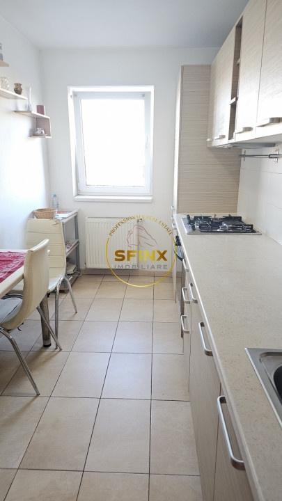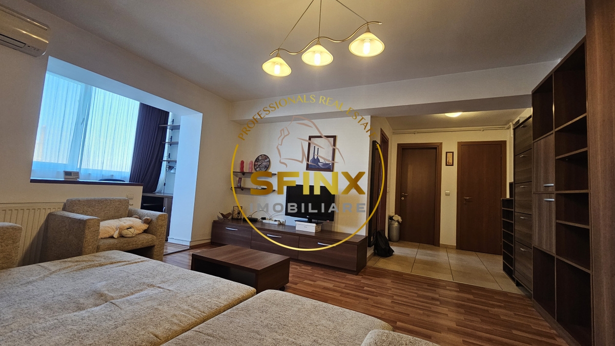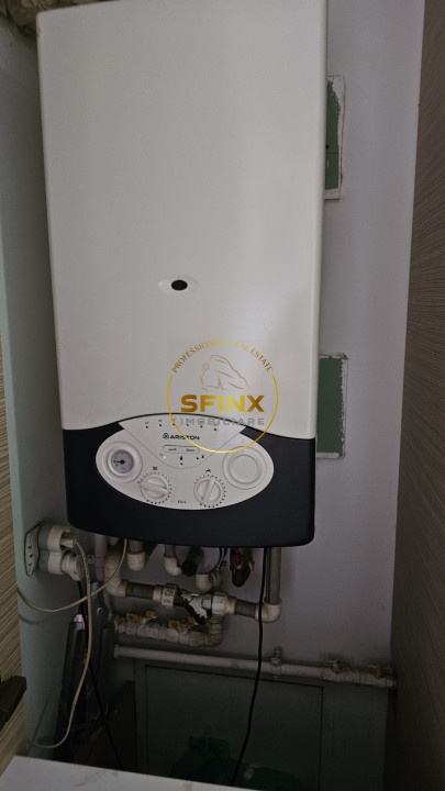 Garsoniera este decomandata, spatioasa, este formata din hol, debara, bucatarie inchisa, camera cu iesire la balcon (inchis, amenajat ca birou) si baie. Confortul termic este asigurat de centrala proprie pe gaz iar racoarea de un aparat de aer conditionat.
