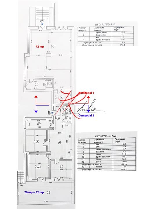 Avem la dispozitie 2 spatii de aproximativ 70 mp util terasa, care se pot uni impreuna pentru a crea un singul loc de 140 mp
