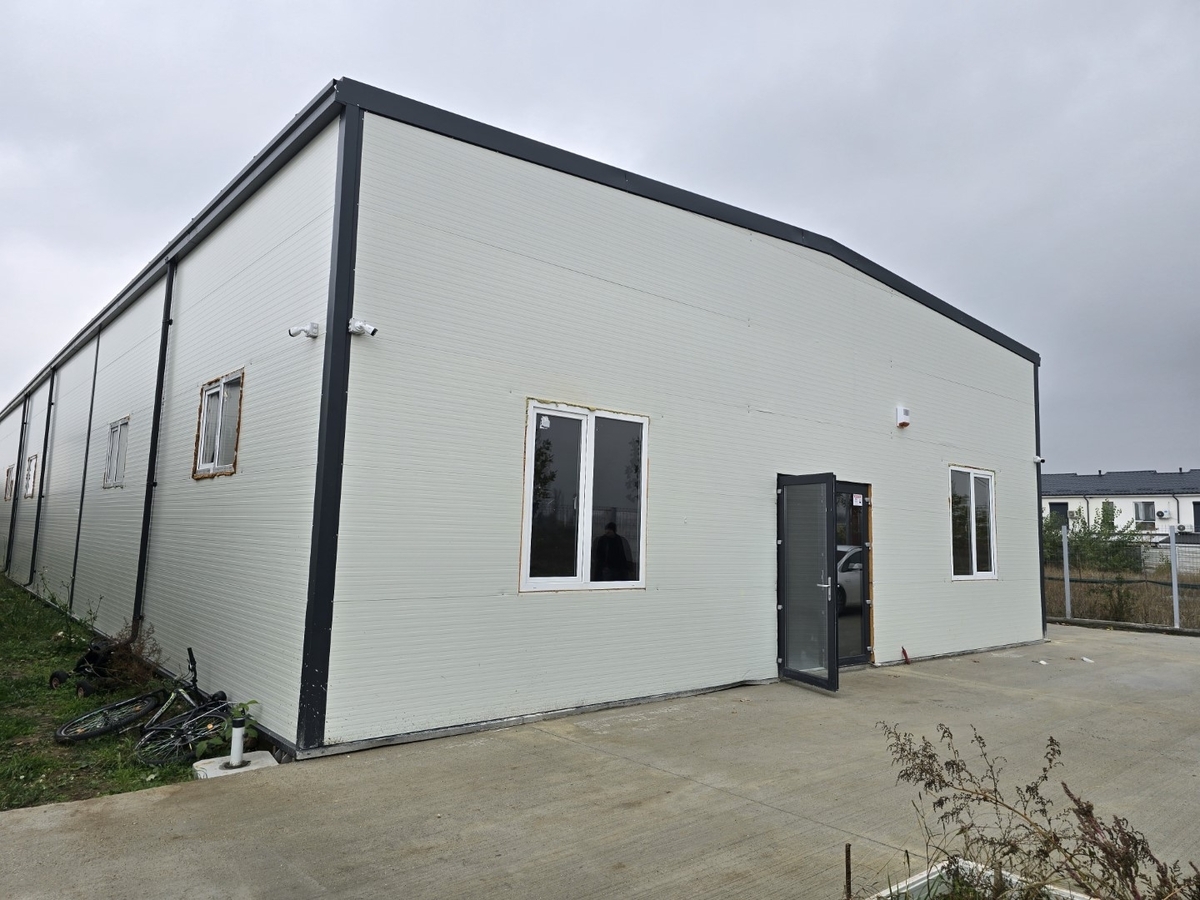 Hala este noua din euro profile HEA si IP-uri, panouri sandwich Topanel rezistente la foc, termopane Rehau, sapa elicopterizata si vopsea expoxidica, usa industriala 3000 x 3000, usa frontala 2500 x 2500, spatiu de birouri 50 mp, grup sanitar 7 mp, CCTV 3 camere exterioare si 3 interioare, curent trifazic, apa si canal. Hala dispune de parcare interioara.