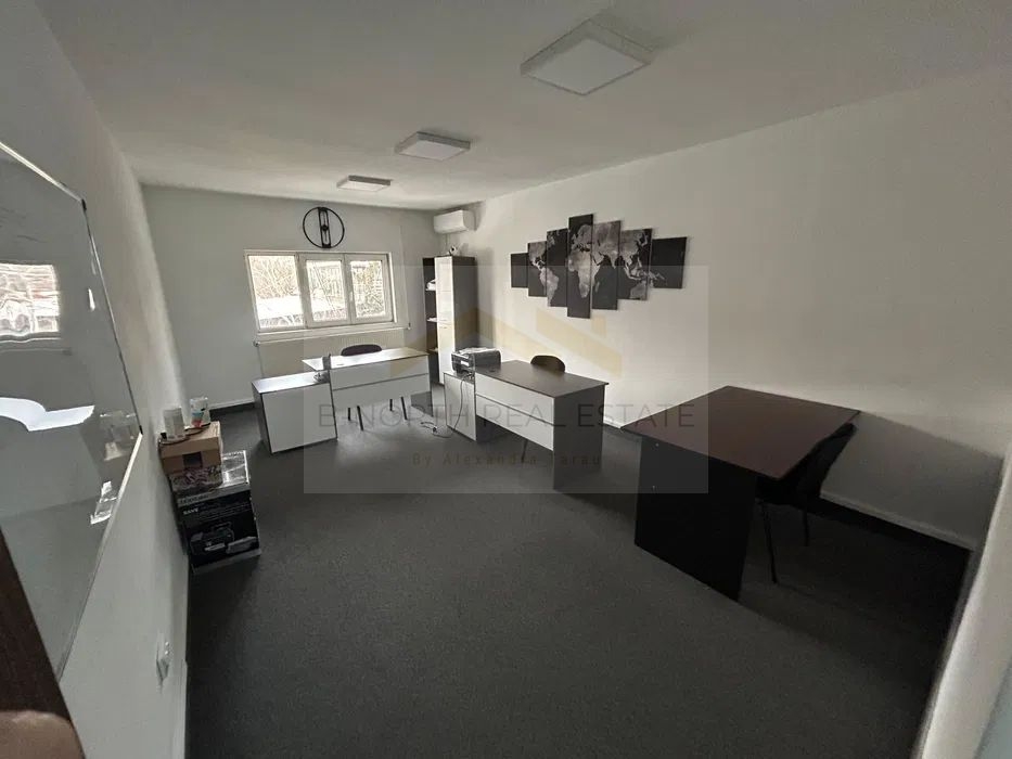 Spatiul este complet amenajat si mobilat pentru activitate de birou, fiind gata de utilizare imediata, fara a necesita investitii suplimentare. Etajul dispune de 3 camere foarte spatioase, hol, palier, baie proprie si iesire catre terasa, oferind un mediu de lucru aerisit, confortabil si bine organizat.