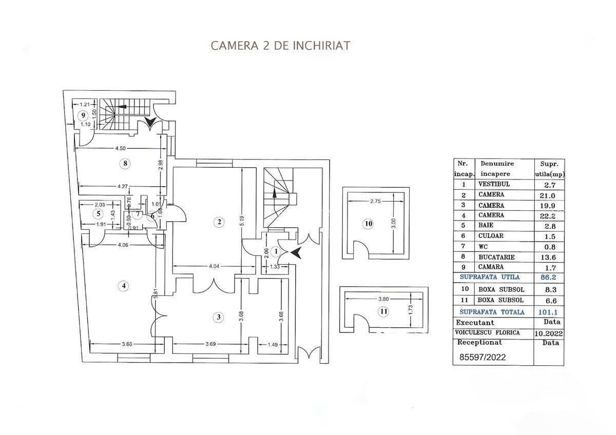 Apartamentul are o suprafata totala de 101 mp. Camerele disponibile sunt cele mentionate mai jos, restul spatiilor fiind utilizate la comun.