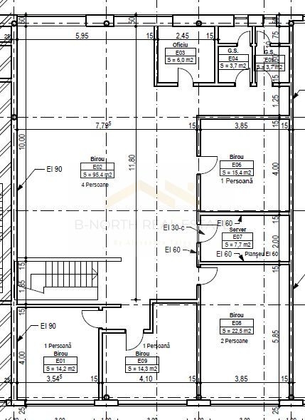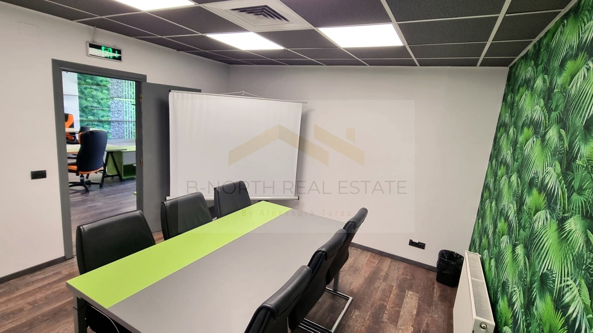 Compartimentare optima: birouri individuale + un spatiu amplu 95.4 mp, ce poate functiona ca sala de conferinte, training, meeting room sau sala pentru cursuri si activitati pentru copii