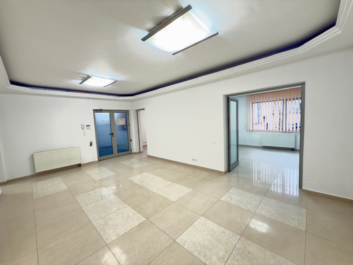 open space generos + 3 birouri decomandate, grup sanitar, curte privata, dublu acces.