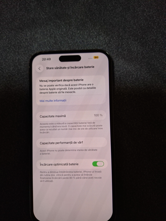 Sanatate baterie 100%, pretul este fix 2500 Lei. Garantie 1 an, are husa incarcator si cablu original. nu trimit prin curier, predare personala in Buzias, Judetul Timis,