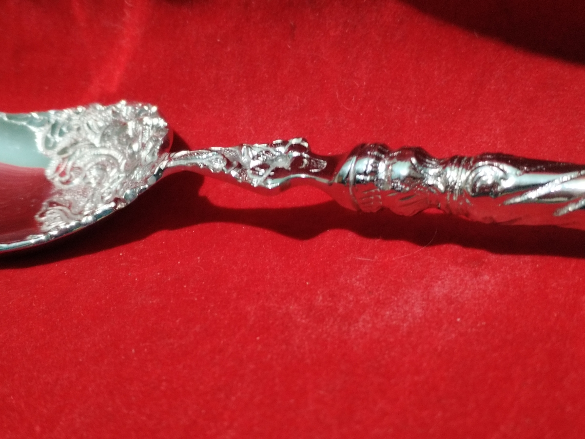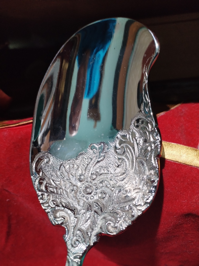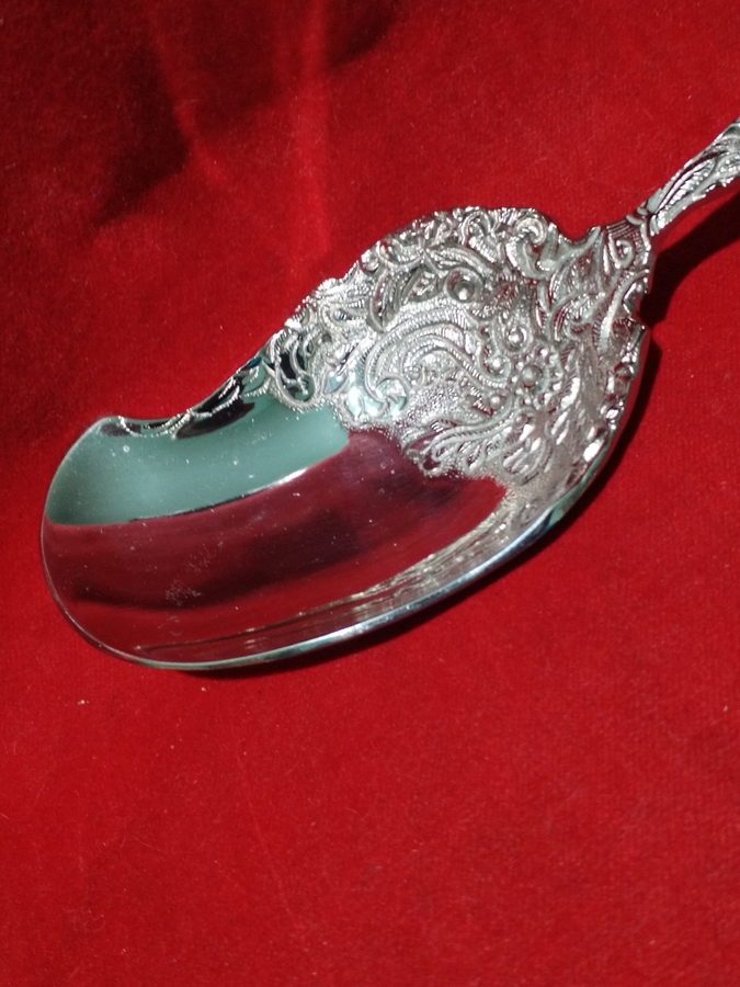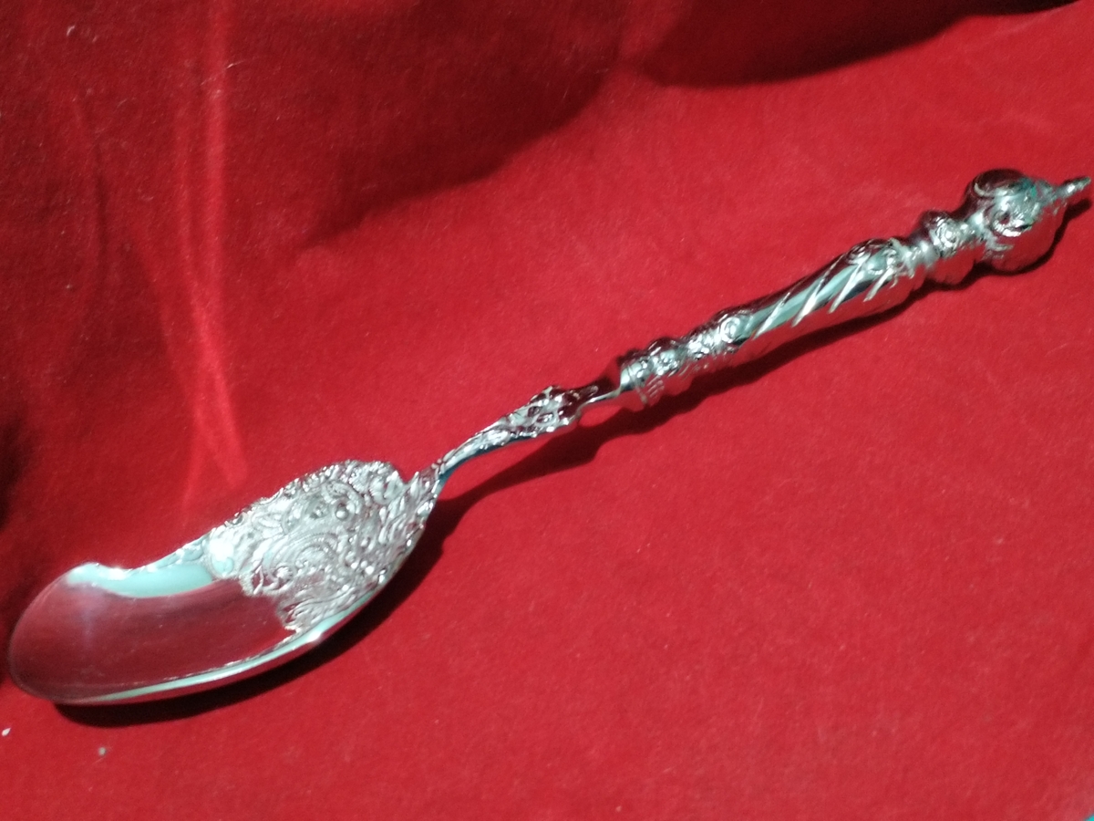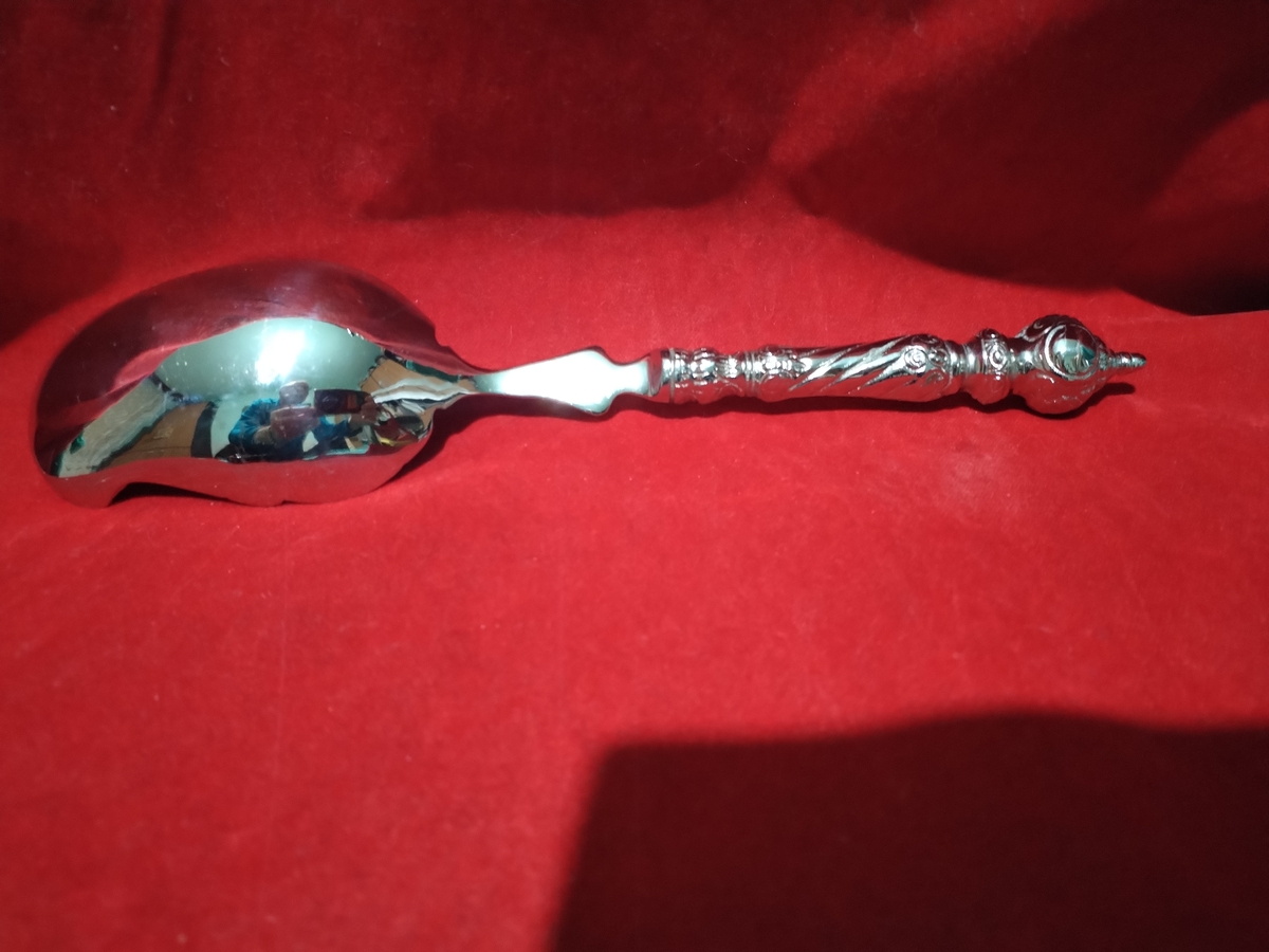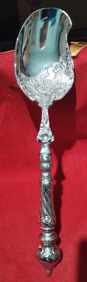 Lingura mare franceza argintata, pentru servit, realizata in stil baroc.