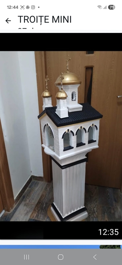 Bisericuta dimensiuni : 55 cm inaltime, 32 / 26 cm latime - pret 700 lei
