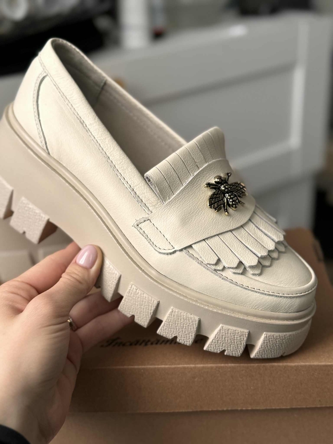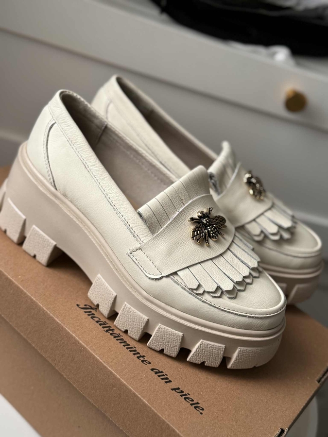 Mocasini bej din piele naturala 100%, eleganti si foarte confortabili