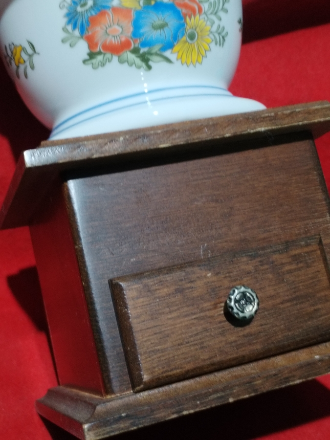 Rasnita de cafea franceza din portelan si lemn, anii 1980.