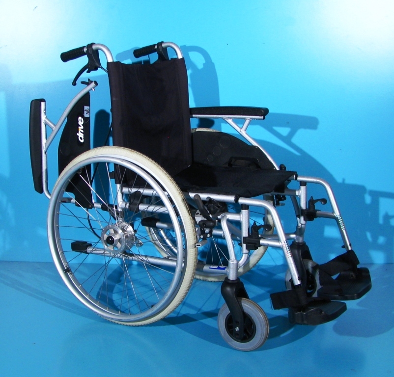 Scaunul rulant are schelet metalic si parti din aluminiu, vopsit epoxy.