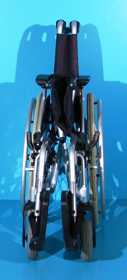 Carucior handicap second hand pliabil cu detasare rapida a rotilor, destinat deplasarii persoanelor cu handicap locomotor, si cu mobilitate scazuta.