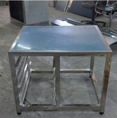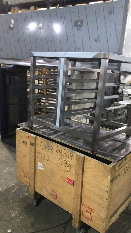 Suport pentru echipamente / gratar / friteusa , realizat din teava rectangulara inox , cu ghidaj de tavi de 6 gn 1/1,