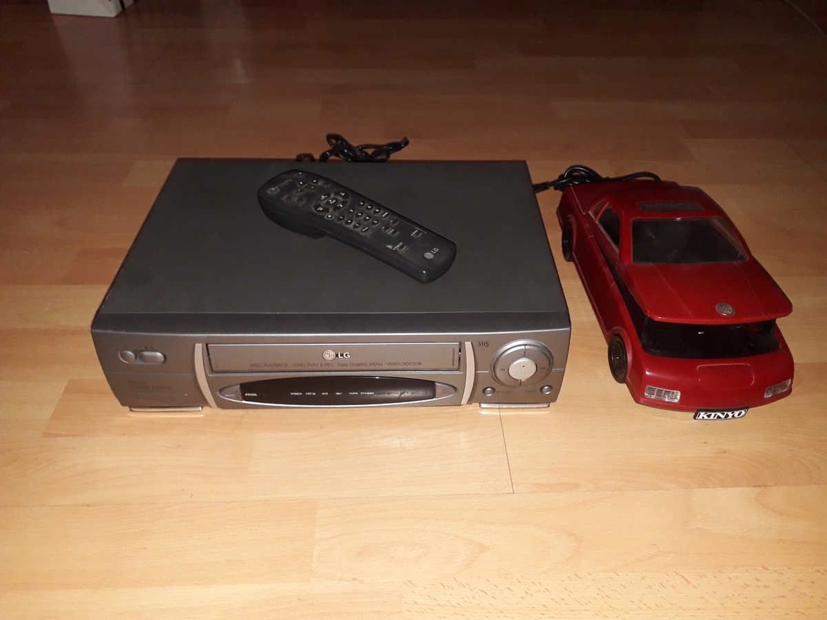 Pachet nostalgie anii '90: videorecorder LG cu telecomanda originala + derulator casete masinuta Kinyo!