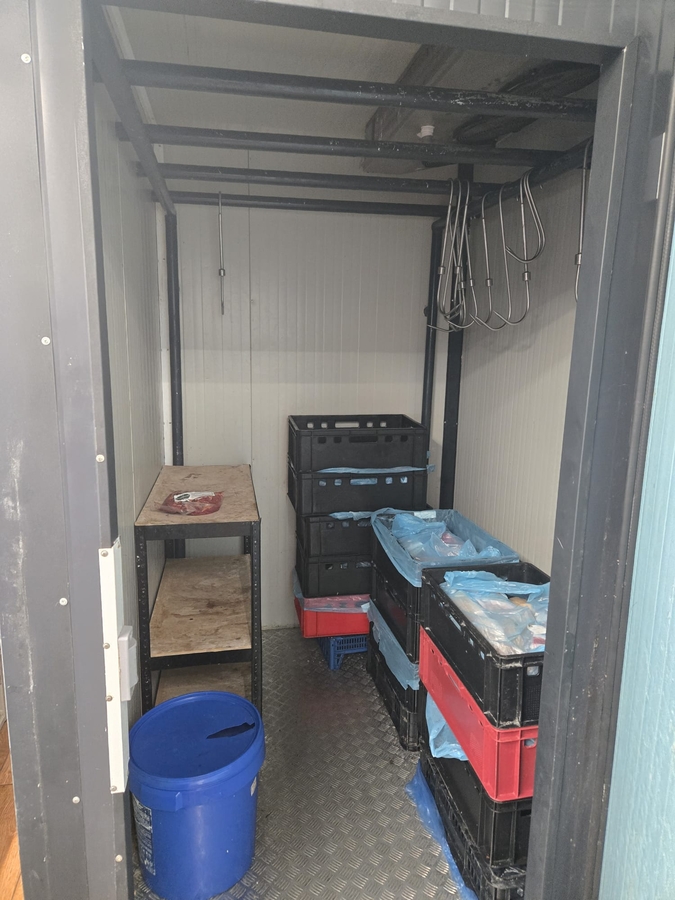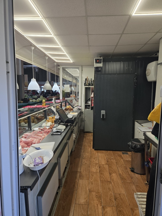 Spatiul este dotat cu camera frigorifica noua, vitrina frigorifica 6 m noua, masa de lucru complet echipata pentru activitatea de maceralie, cantar. Locatia este racordata 380 W.