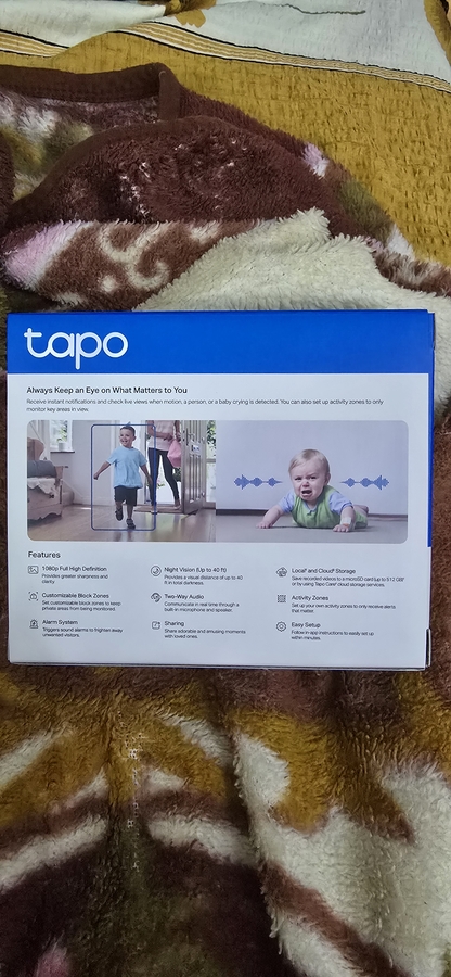 De vanzare camera de supraveghere Tapo cu incarcator si instructiuni de utilizare.