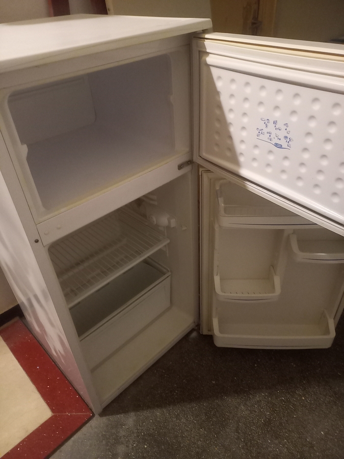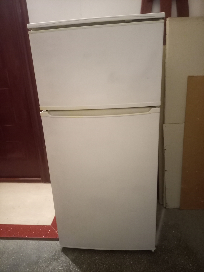 Vand frigider in stare perfecta de functionare, cu congelator in partea de sus. Inaltime medie.