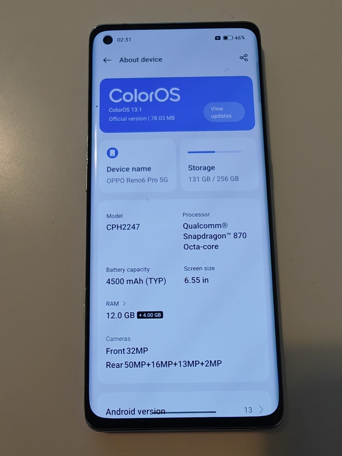 Versiune soft: ColorOS 13.1