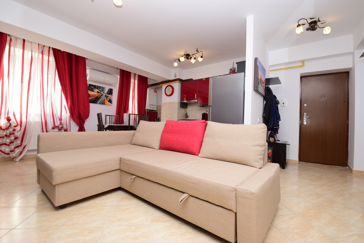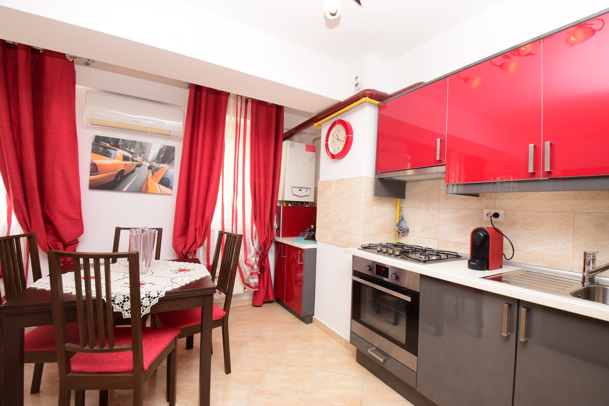 800 m pana la metrou 1 Decembrie 1918 (≈10 minute de mers pe jos). Suprafata totala: 54,76 mp (inclus balconul de 6,65 mp). Orientare est (rasarit), compartimentare semidecomandata. Bucatarie open-space cu living, acces in balcon din living. Finisaje si dotari moderne: gresie, faianta, geamuri termopan, usa metalica. Centrala termica proprie, 2 aparate de aer conditionat. Mobilier si electrocasnice in stare foarte buna (plita gaz, cuptor electric, hota, frigider, masina de spalat). Complex linistit, locatari tineri si civilizati. Zona linistita, aerisita, preponderent zona de case si blocuri cu regim mic de inaltime. Comision 0% pentru cumparator
