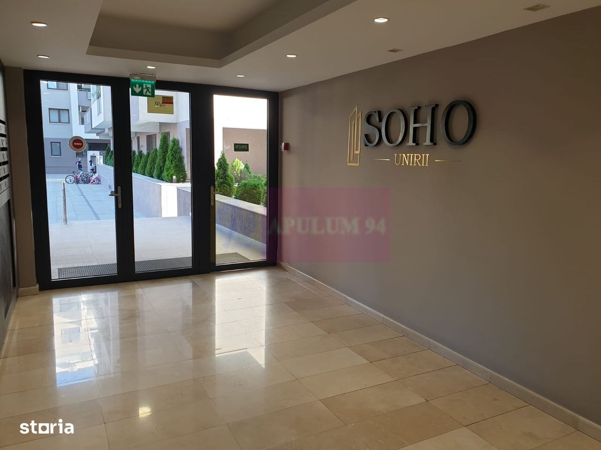 Agentia Apulum 94, va propune spre vanzare un apartament cu 2 camere situat in ansamblul Soho Unirii, la parter.Se vinde mobilat si utilat. Suprafata utila este de 59,39mp, zona de living + bucataria deschisa are 33mp iar dormitorul are 16mp. Mentionez ca nu exista balcon. Incalzirea se face prin pardoseala, cu centrala de bloc.La subsol este parcarea subterana pe doua nivele, parterul fiind inalt. Ansamblul este format din 3 blocuri cu o curte interioara generoasa, toate intrarile sunt gated, accesul facandu-se doar pe baza de cartela. In incinta este prezent intotdeauna un paznic. Parterul este mai inalt ca restul etajelor, inaltimea camerelor fiind de 2.75cm. Localizarea este centrala, se ajunge in centrul vechi in 15 min pe jos. In 10 minute la metroul de la Unirea, in 6 min la metroul Tineretului si aprox 8 min pana la metroul Timpuri Noi. Zona e foarte linistita si ferita de zgomotul orasului.