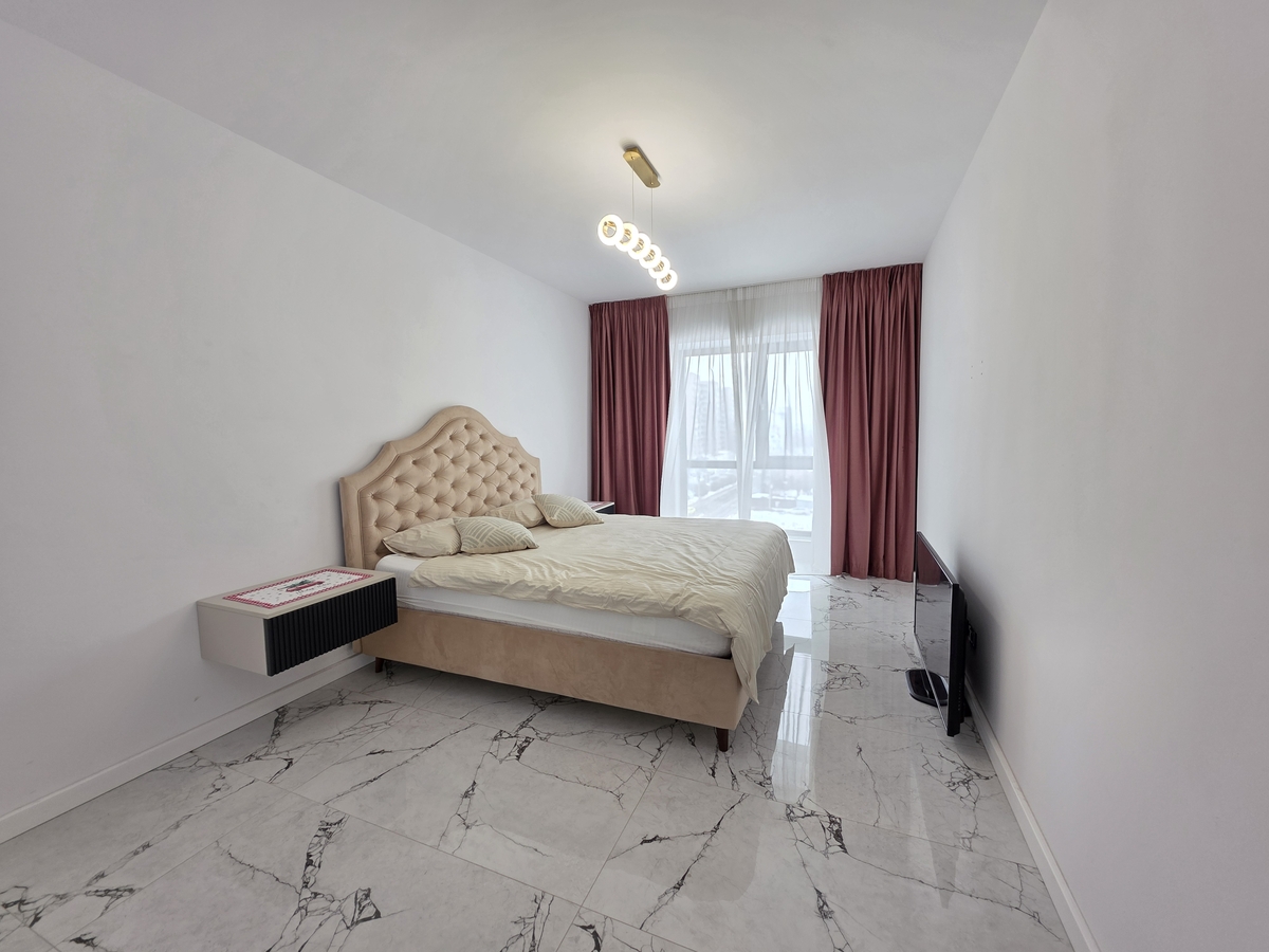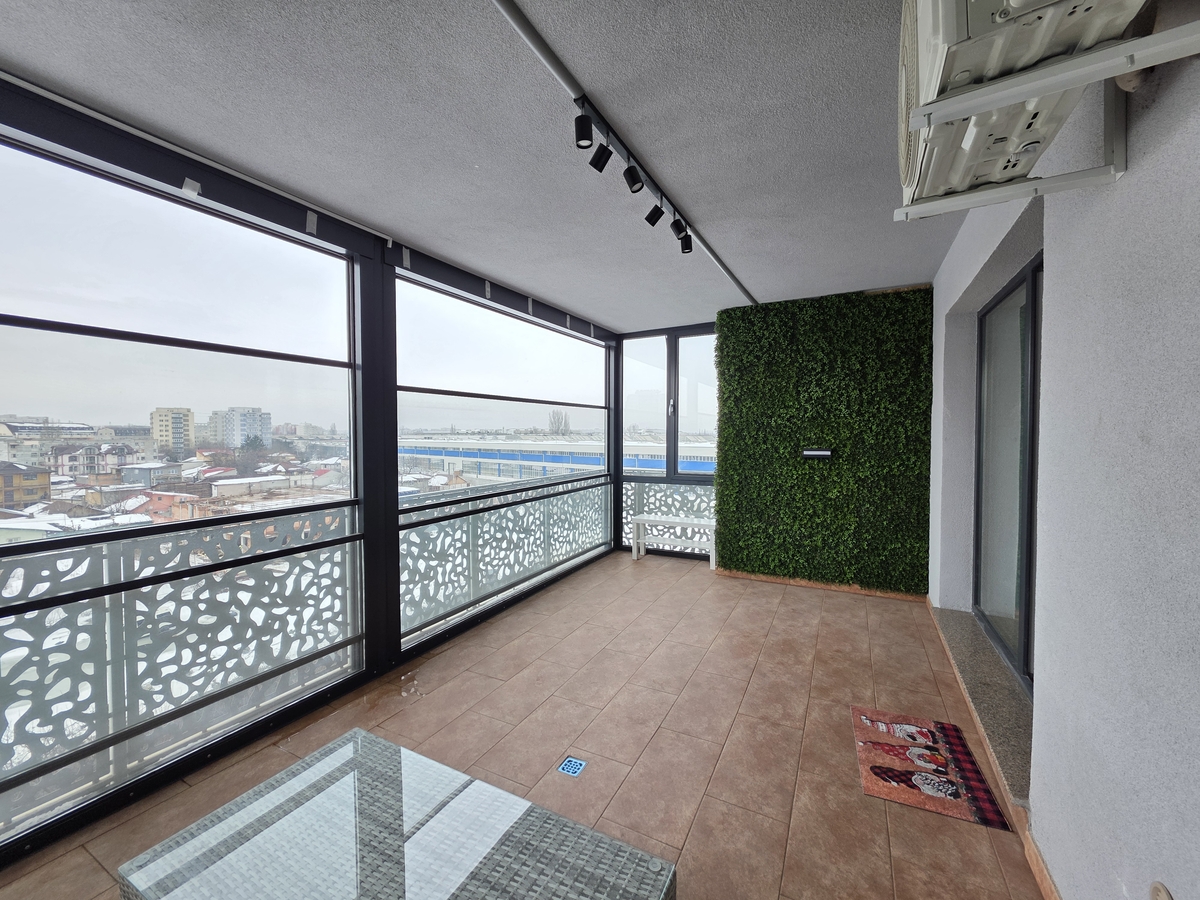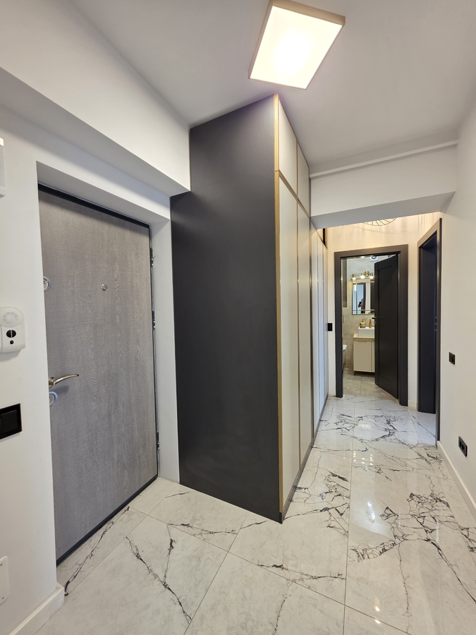 Va prezentam un apartament de 2 camere situat intr-un imobil nou, finalizat in 2025, pozitionat la etajul 4 din 11, ce impresioneaza prin eleganta, spatiu generos si finisaje premium. Cu o suprafata utila totala de 77 mp, locuinta include un balcon spectaculos de 20 mp, inchis cu tamplarie termopan si dotat cu sistem automatizat de deschidere, ideal pentru relaxare in orice sezon.