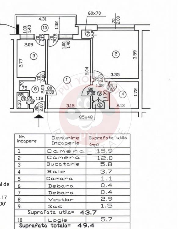 Suprafata totala: 49 mp