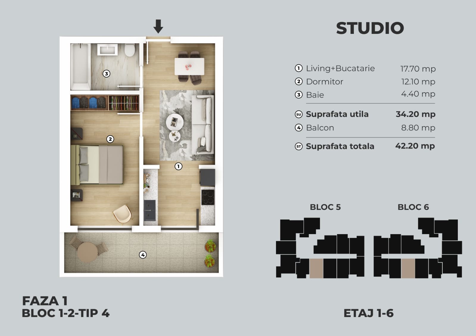 Optiuni interior: Aer conditionat Apometre Balcon Centrala termica Contor gaze Inst. electrice noi Inst. sanitare noi Izolatie termica Termopan Usa metalica