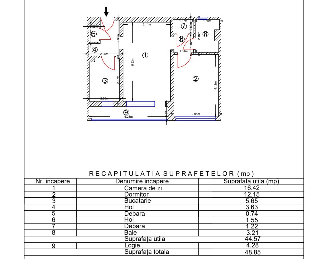 Optiuni interior: Apometre Balcon Debara Inst. sanitare noi Izolatie termica Termopan Usa metalica