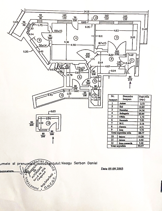 Suprafata utila este de 68 mp, la care se adauga doua balcoane de 15 mp si 7 mp, 2 grupuri sanitare, o boxa la demisol de 4 mp si teren in proprietate, rezultand o suprafata totala de 94 mp. Apartamentul beneficiaza de centrala proprie, bucatarie mobilata si utilata, finisaje moderne si o compartimentare versatila. Este foarte luminos si curat, cu spatii generoase si atmosfera primitoare.
