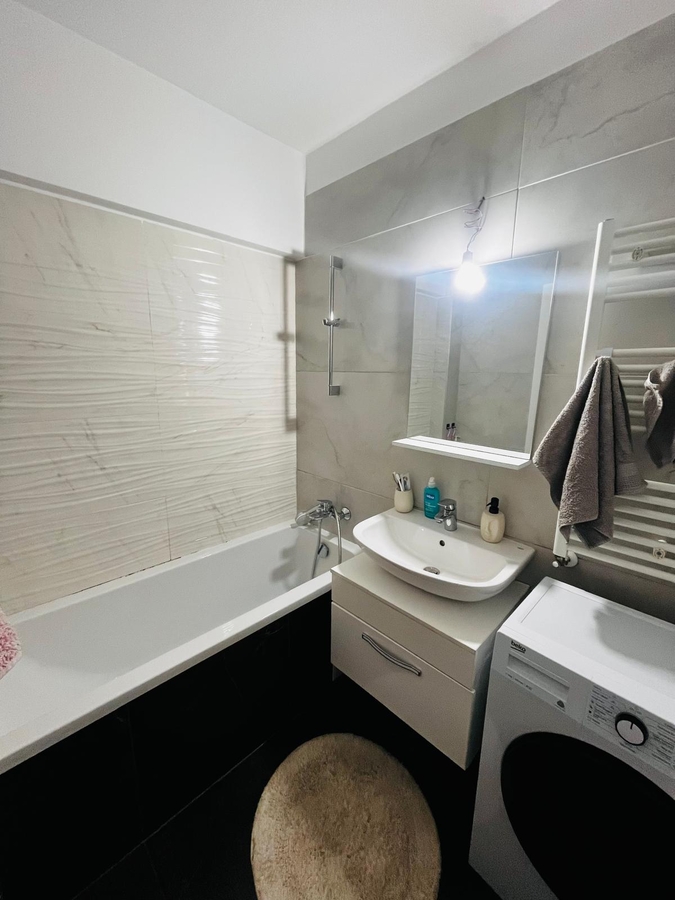 Se vinde mobilat si utilat complet, fiind dotat cu centrala termica Bosch. In plus, apartamentul include un loc de parcare suprateran acoperit fix langa scara, inclus in pret, eliminand orice grija legata de siguranta masinii.