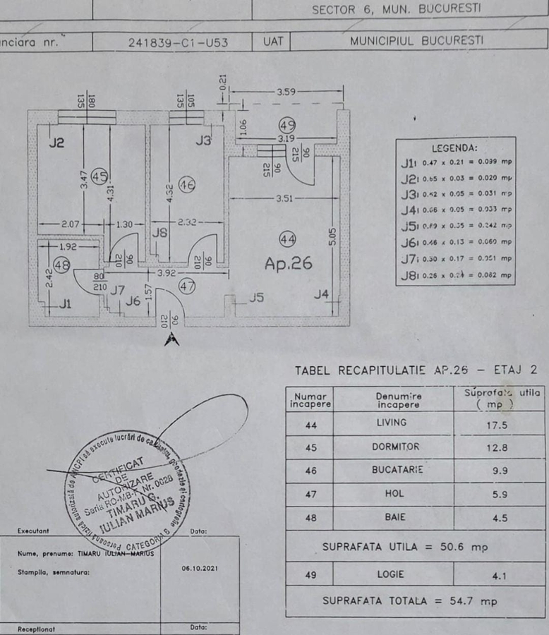 2 camere decomandate. Suprafata totala: 54,7 mp