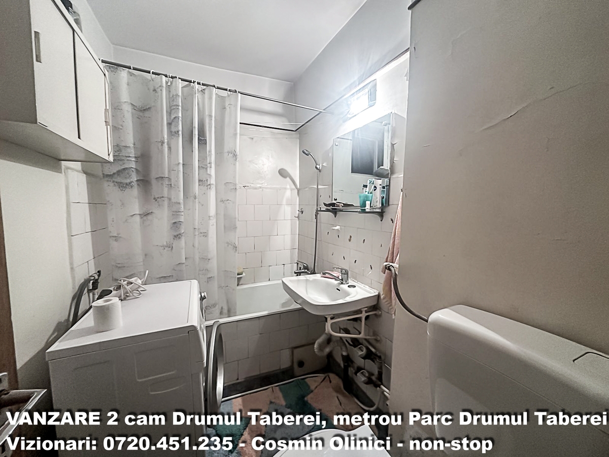 Apartamentul de 2 camere este situat intr-un bloc construit pe o pozitie stradala, luminoasa si sigura, aproape de statia de metrou Drumul Taberei, la doar 2–3 minute de mers pe jos.
