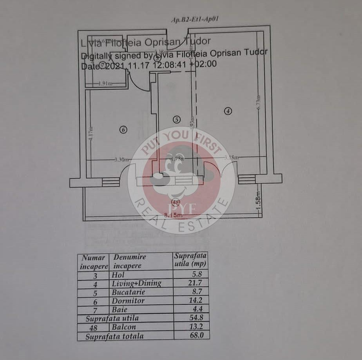 Suprafata totala: 68 mp