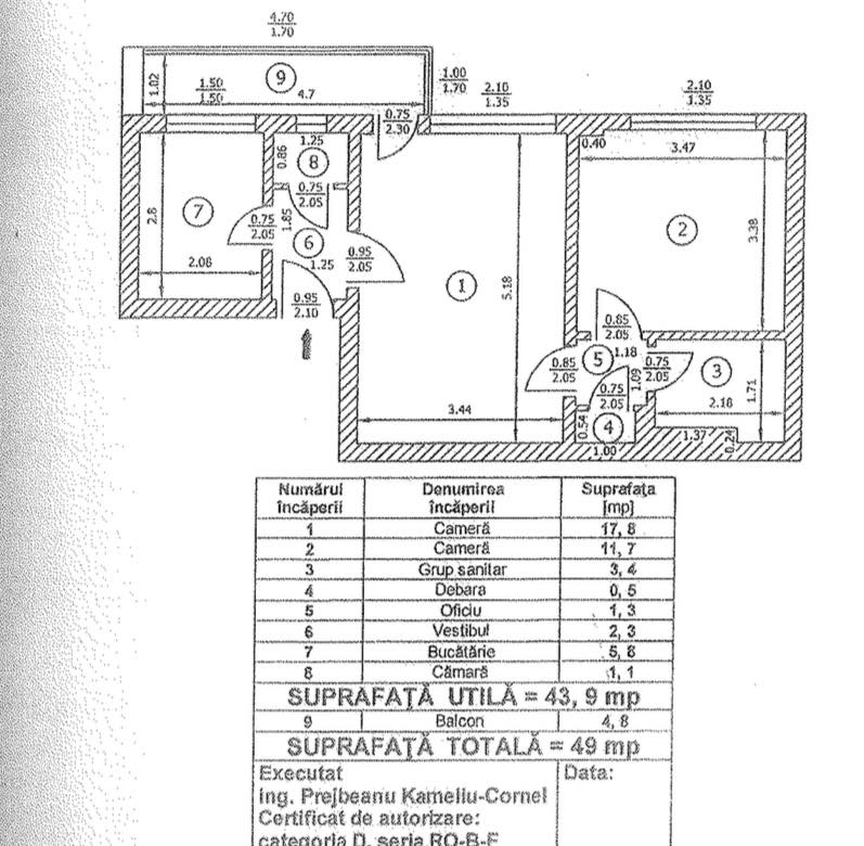 Optiuni interior: Aer conditionat Apometre Balcon Centrala termica Contor gaze Debara Repartitoare caldura Termopan Usa metalica