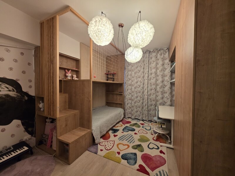 Mobila si electrocasnicele sunt in stare foarte buna, blocul dispune de sala de sport la parter.